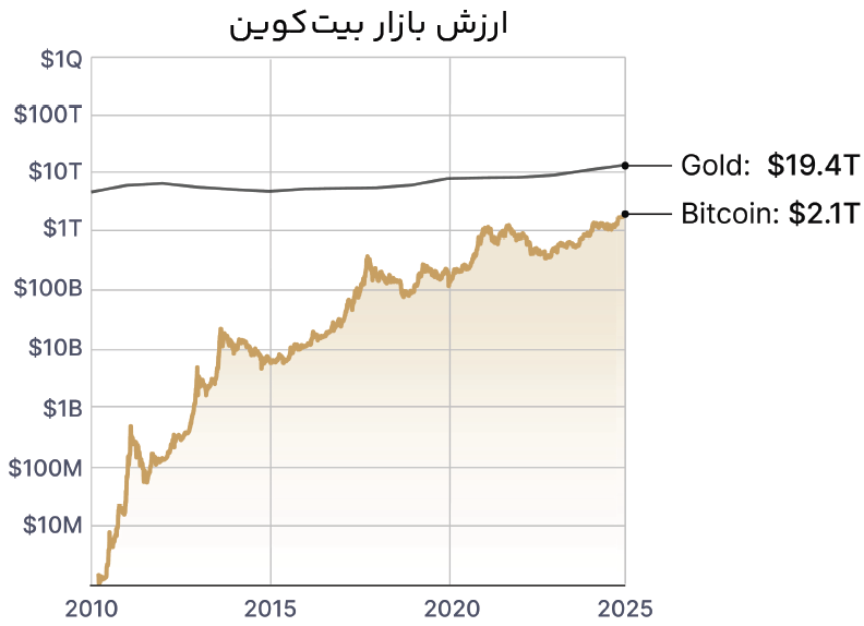 ارزش بازار بیتکوین برای نخستینبار در سال ۲۰۲۴ از دو تریلیون دلار گذشت و در میان بزرگترین ارزها و داراییهای امن جهان قرار گرفت.