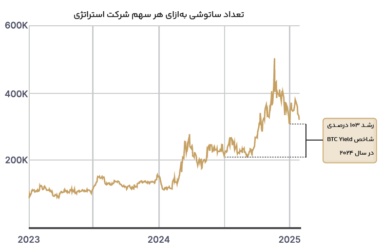این روند باعث ایجاد یک شاخص جدید به نام BTC Yield شده است که عملکرد یک شرکت را بر اساس توانایی آن در افزایش مقدار بیتکوین هولد شده به ازای هر سهم اندازهگیری میکند.