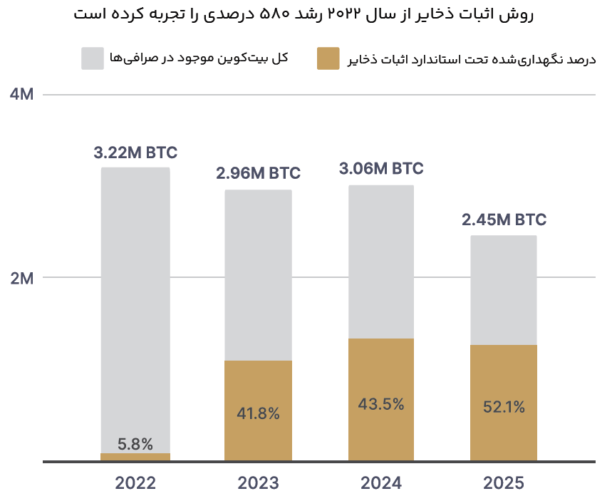 «اثبات ذخایر»، روشی است که صرافیها با استفاده از آن نشان میدهند که دارایی بیتکوین مشتریان خود را در اختیار دارند. این روش اکنون به استانداردی در صنعت تبدیل شده و بیش از نیمی از داراییهای صرافیها را در بر میگیرد.