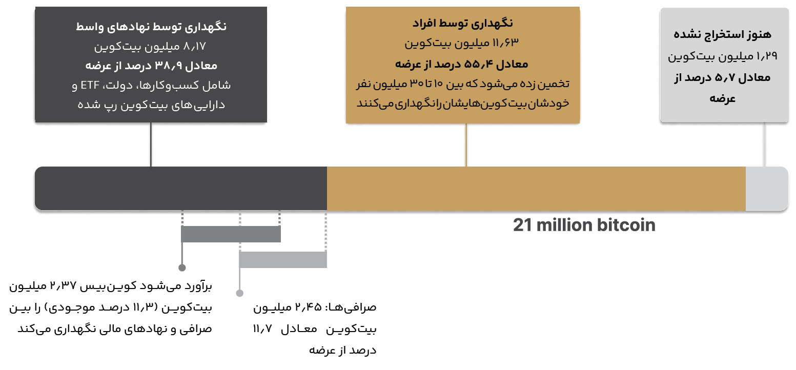 انتظار میرود با افزایش تقاضا برای ETFها و محصولات مشابه، میزان بیتکوین نگهداریشده توسط نهادهای واسطه شناختهشده نیز افزایش یابد.