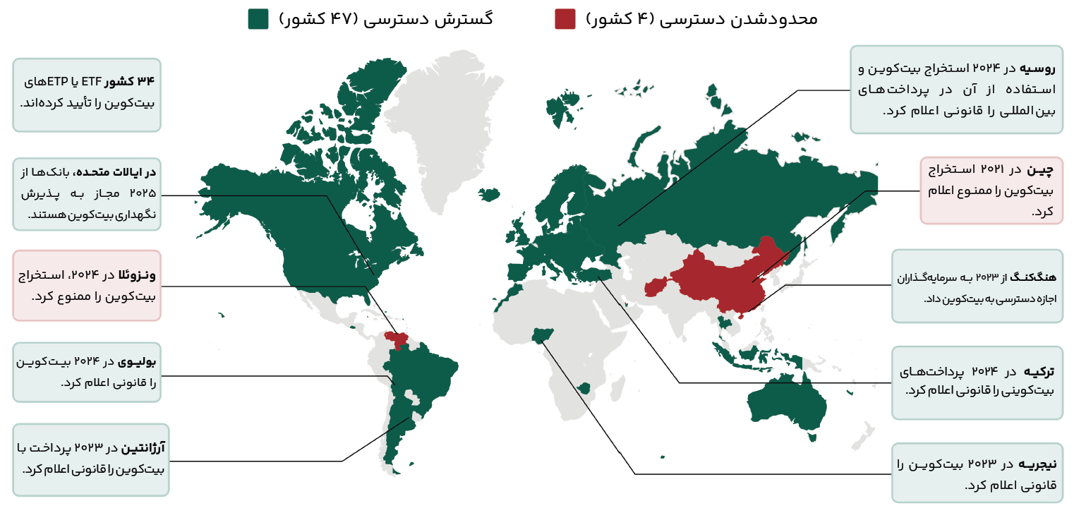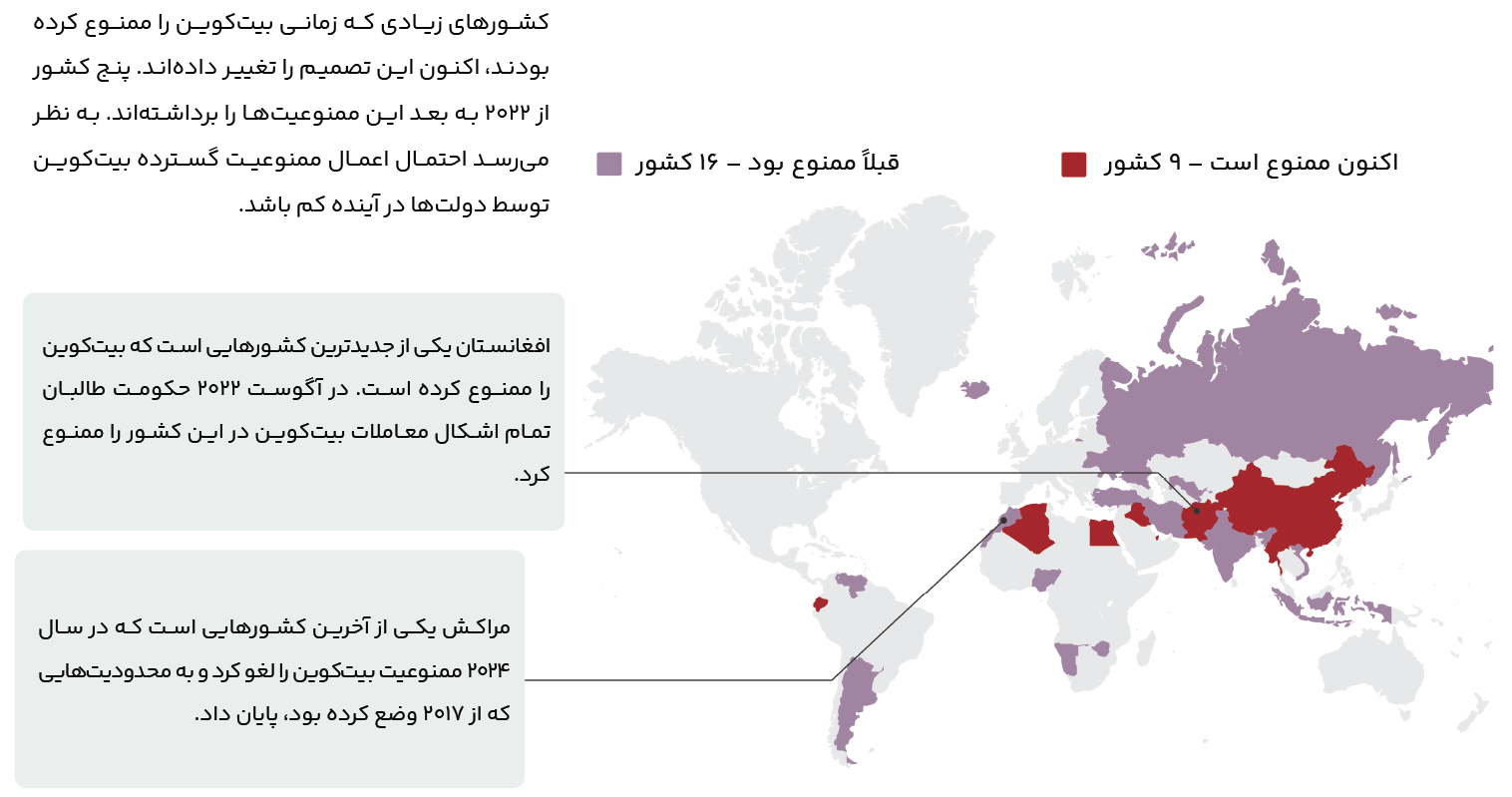تنها ۹ کشور همچنان بیتکوین را بهصورت کامل ممنوع کردهاند.
