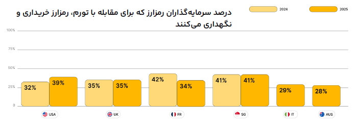 با این حال، تورم همچنان یکی از دغدغههای مهم سرمایهگذاران رمزارزی در ایالاتمتحده است. در سال ۲۰۲۵، 39 درصد از پاسخدهندگان آمریکایی گفتند که رمزارز میخرند و نگه میدارند تا در برابر تورم از دارایی خود محافظت کنند، در حالی که این رقم در سال گذشته 32 درصد بوده است.